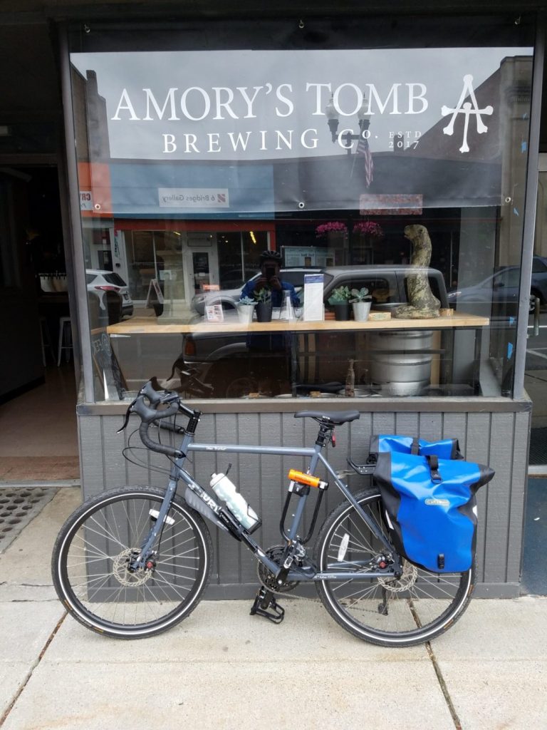 And here’s the bike I’ll be using on the ride, conveniently positioned in front of a brewery where I went at the end of one of my training rides.