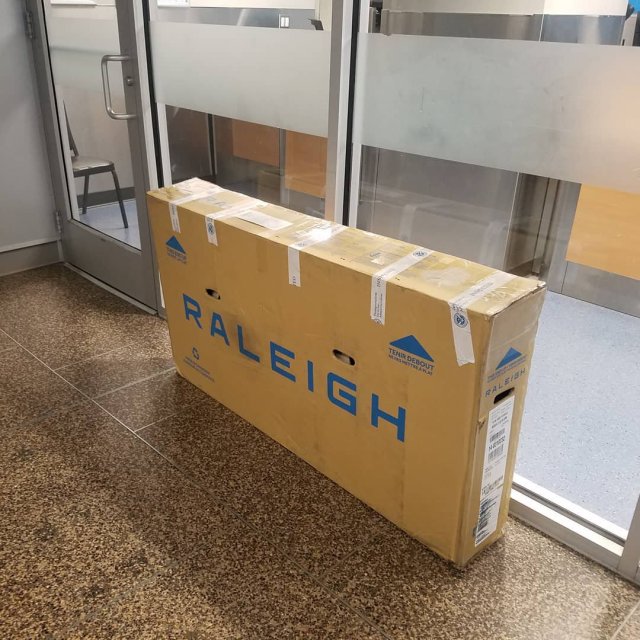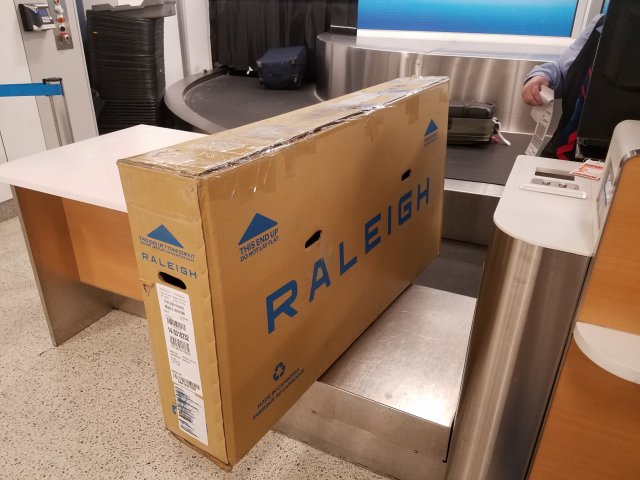 You may notice that there are some white stripes on the box that weren’t there when I checked it in. The TSA apparently thinks that a bicycle is a highly dangerous object, so they took the whole thing apart and put it back together again at some point in transit. Thanks, TSA!
