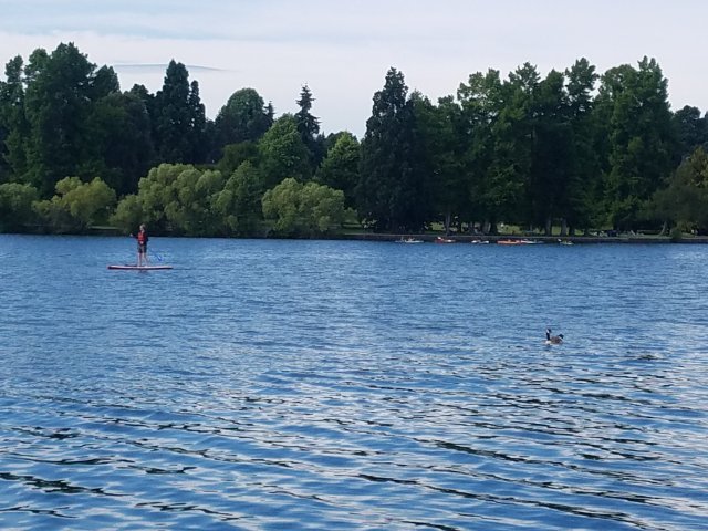 The rest of the day was a bit more mundane. My cousin picked me up, we dropped my bike off at R+E Cycles to be reassembled and tuned up, and I went back to her place for a much-needed nap. Thanks to the late sunsets in Seattle this time of year, when I got up I still had plenty of daylight left to take a walk around Green Lake.