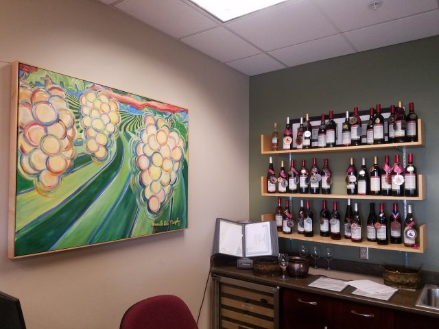 As a result of the winery being part of an academic program, they do some unusual styles and blends that have nevertheless won quite a few awards. (The shelves in the photo feature a selection of their award-winning wines. They’ve won so many awards though that they had to put up another set of shelves on the other side of the tasting room to feature the rest.)