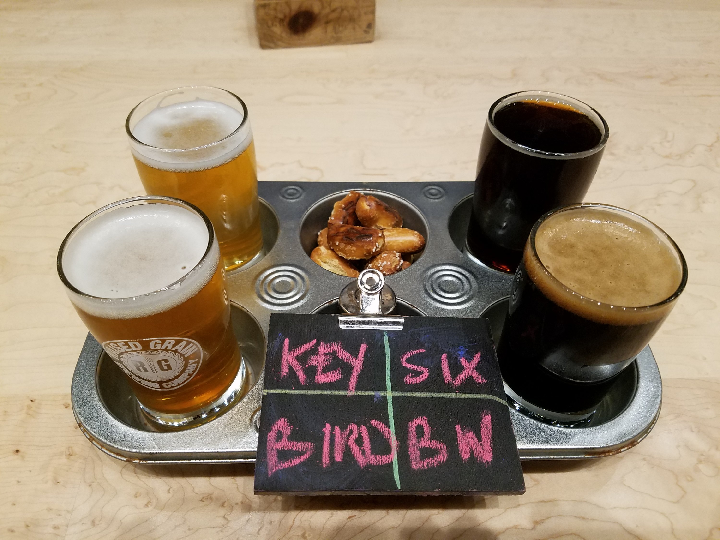 After Katie finished work for the day, another friend of hers joined us and we headed over to Raised Grain, which had been recommended to me as one of the best breweries in greater Milwaukee and which she also liked from having had their beers at bars. Even before I tried the beer, I appreciated the nice presentation of their flights.