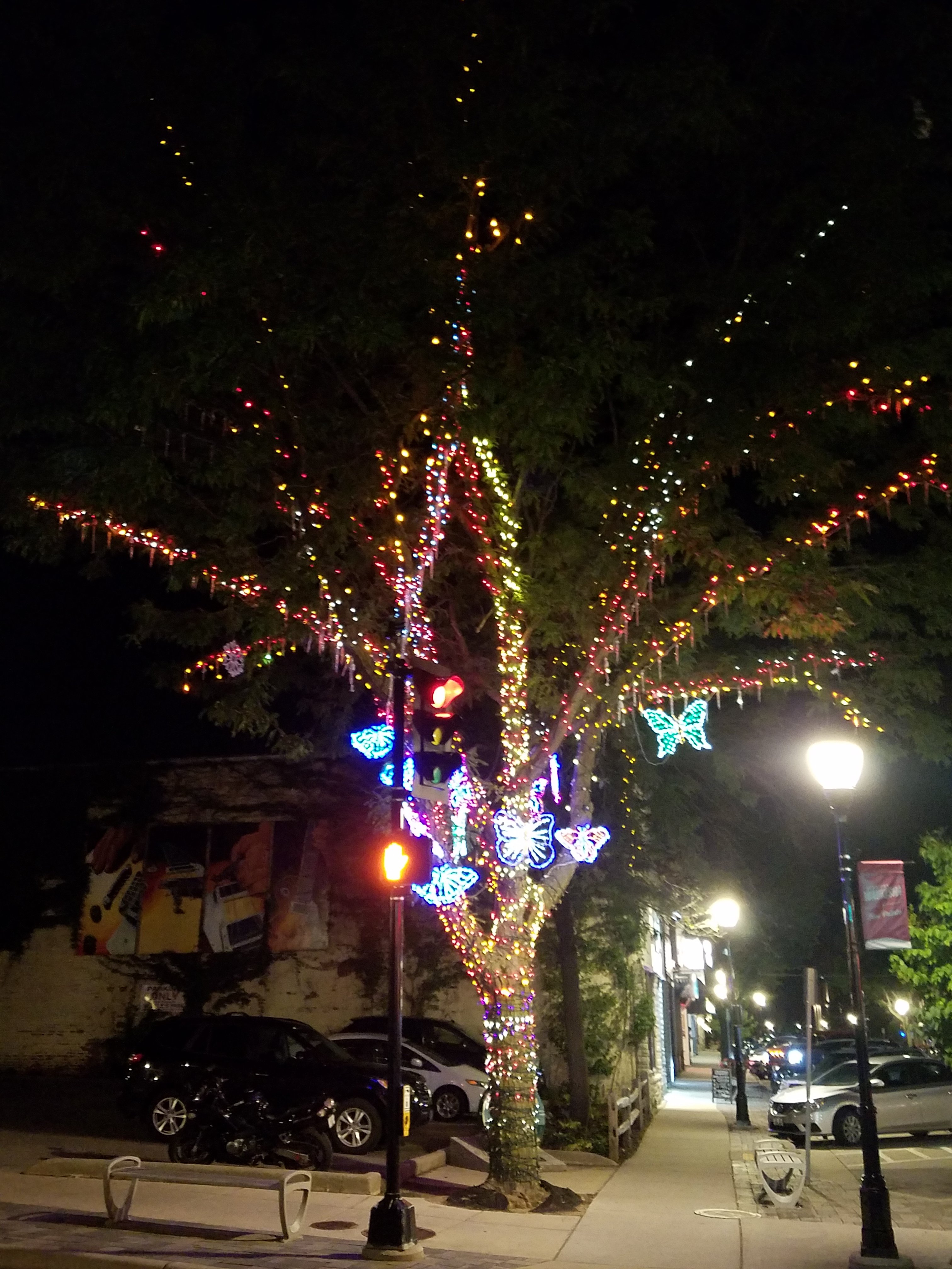After the brewery, Katie and her friend wanted to show me downtown Waukesha. Overall it kind of reminded me of downtown Mountain View, CA, though with very different politics. They also had a very lit up tree, which is unusual to see in the middle of summer.