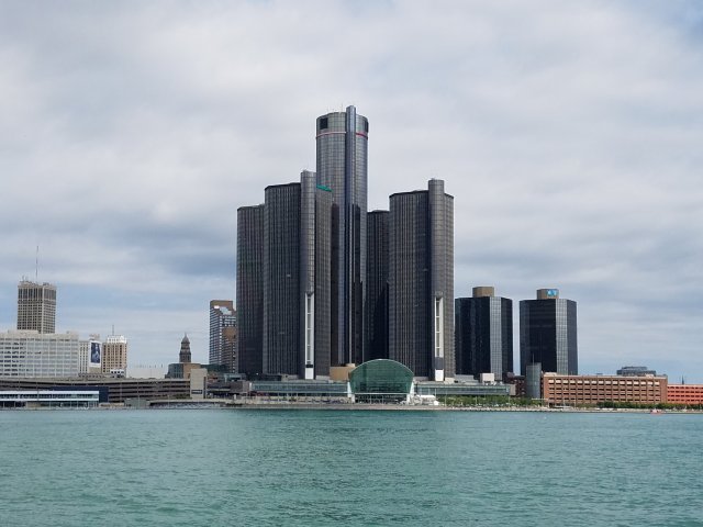 I circled around the tunnel entrance to get out to the Detroit River, where I had a very nice view of Detroit across the way.