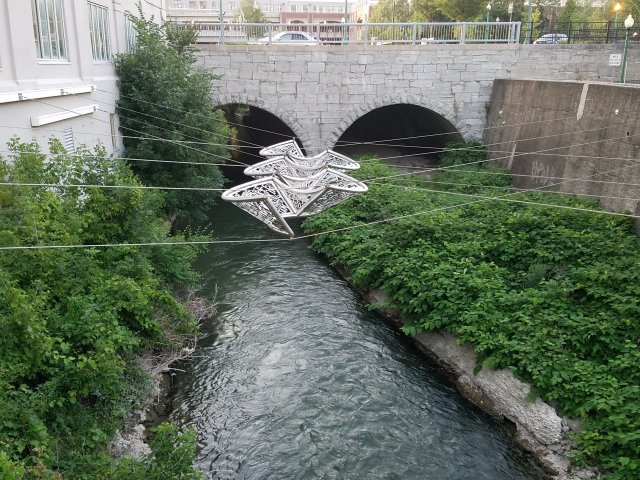 The guy next to me also recommended that I check out Empire Brewing in Armory Square and recommended a couple of specific beers too, so I walked over there. On the way I saw some interesting artwork over a canal.